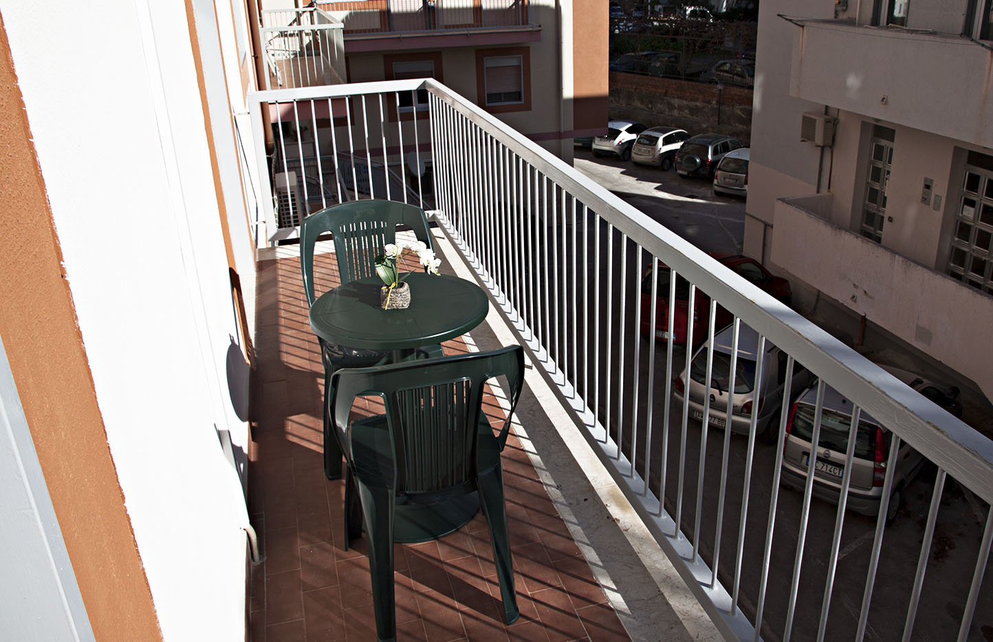 1 air-conditioned bedroom, with one double bed and one single bed, wardrobe, two armchairs TV, with balcony