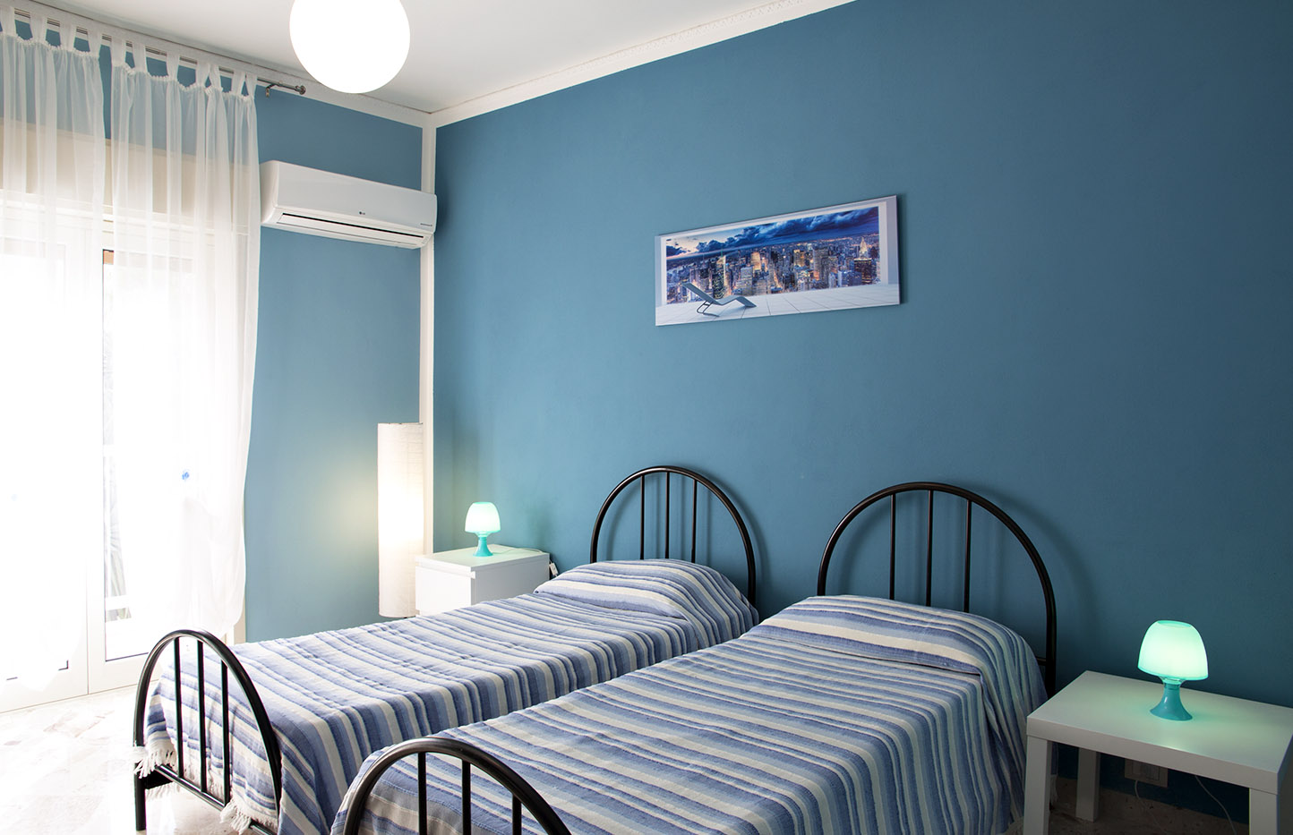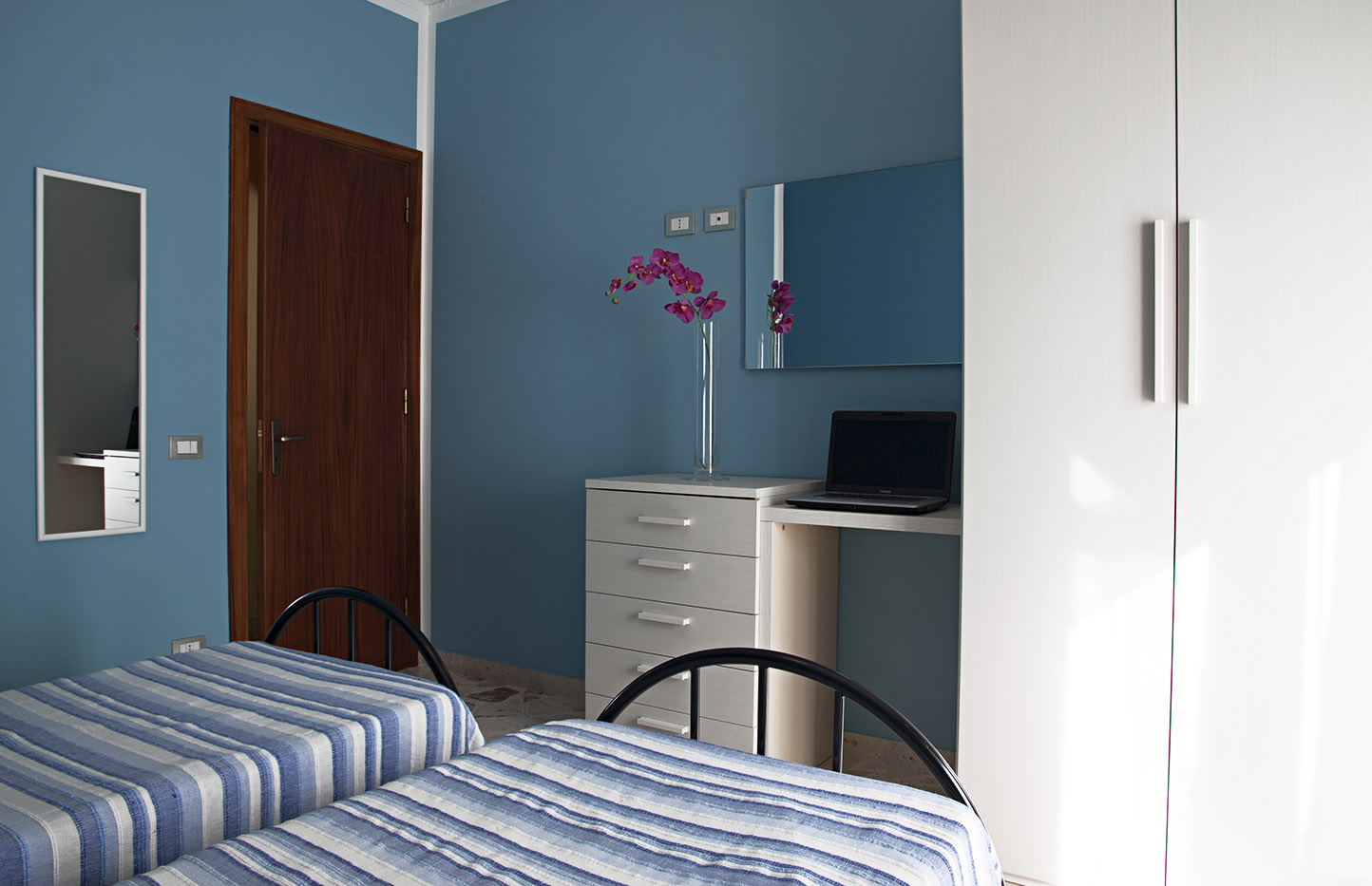 1 air-conditioned bedroom, with twin beds, wardrobe, desk and chest of drawers, with balcony