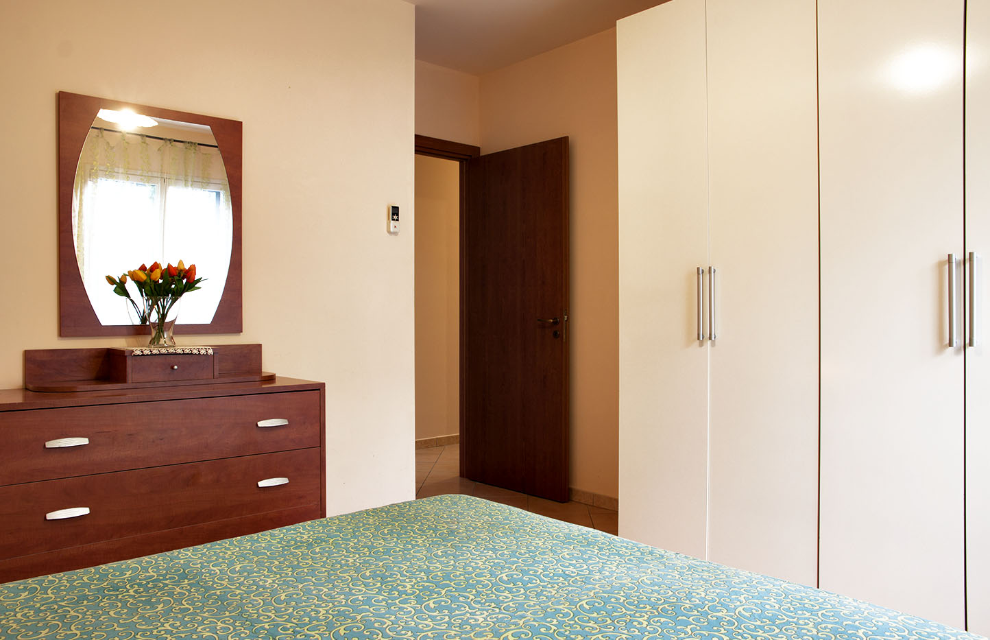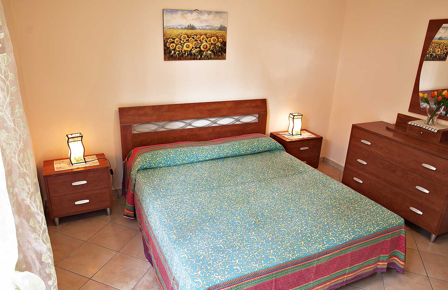 1 air-conditioned bedroom, with one double bed, wardrobe and chest of drawers