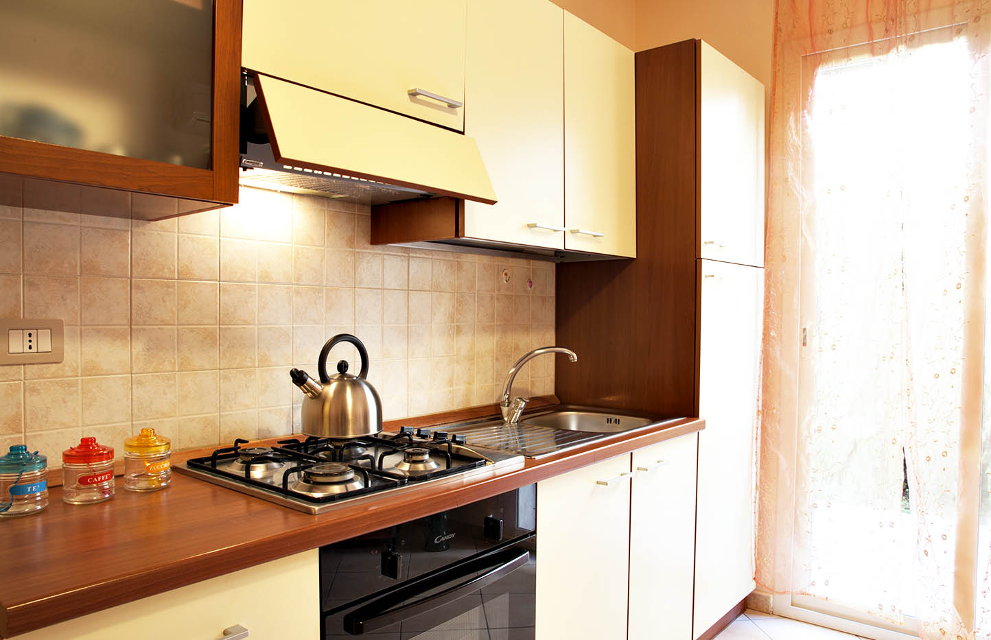 Lovely apartment with a veranda facing to a garden where you can find refreshment. You can plan your lunches and your dinners directly into this area enjoying yourself and hosting your friends. Flat is ideal for family and your pets. It can accommodate 4 people, thanks to the sofa bed in the kitchen.